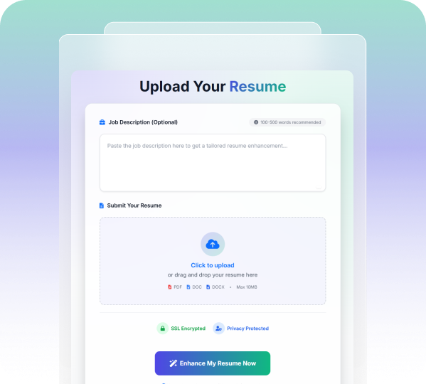 Absolutely. We take your privacy seriously and use industry-standard encryption to protect your information. We do not share, sell, or store your personal data beyond what is necessary to provide our services. Any data you input is used solely to generate your enhanced resume.