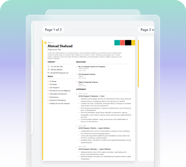 Receive your enhanced resume with detailed analysis, improvement suggestions, and ATS optimization and choose from various templates available.